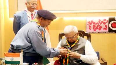 राज्यपाल पटेल को स्काउट्स स्कार्फ पहनाकर किया सम्मानित