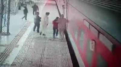 चलती ट्रेन के नीचे गिरी लड़की, हवलदार की बहादुरी से बची जान