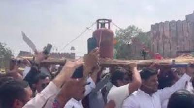 गैस संकट पर कांग्रेस का प्रदर्शन, खाली सिलेंडर और जलता चूल्हा लेकर किया विरोध