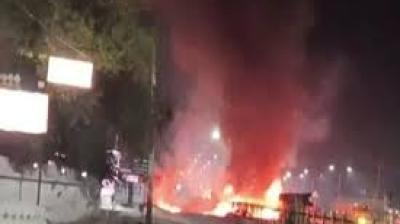 भरतपुर में कोयले से भरा ट्रेलर पलटा, ड्राइवर की दर्दनाक मौत; डीजल फैलते ही भड़की आग