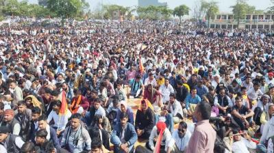 हरदा में करणी सेना का आंदोलन, 50 हजार कार्यकर्ता जुटे, शहर छावनी में तब्दील