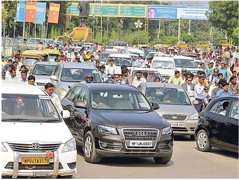 इंदौर। इंदौर में जनता ट्रैफिक जाम से परेशान है और पुलिस का पूरा ध्यान सिर्फ चालान काटने पर है। ध्यान देने वाली बात यह है कि जिन भी क्षेत्रों में जाम लग रहा है वहां पर न तो पुलिसकर्मी मौजूद हैं न ही कोई अधिकारी या जनप्रतिनिधि सुध ले रहा है। पूरा शहर रेंग रहा है और जनप्रतिनिधि रैलियों में व्यस्त हैं। कल प्रदेश भाजपा अध्यक्ष हेमंत खंडेलवाल के आगमन पर भी पूरा शहर जाम रहा। तीन घंटे तक लोग जाम में फंसे रहे और नेता शक्ति प्रदर्शन करते रहे।