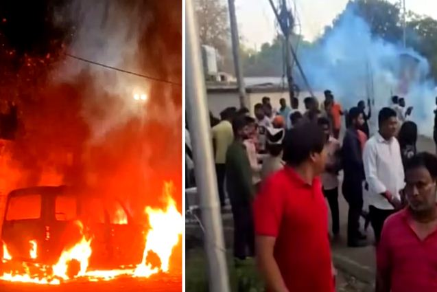 थाने के बाहर पथराव, पुलिस वाहन क्षतिग्रस्त