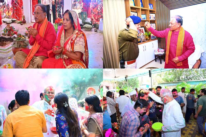 मुख्यमंत्री विष्णुदेव साय ने अपने पैतृक गांव बगिया में रंग और गुलाल के साथ होली मनाई। उन्होंने भगवान राधा-कृष्ण की पूजा कर खुशहाली की कामना की।