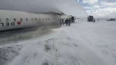 टोरंटो में डेल्टा एयरलाइंस का विमान क्रैश, लैंडिंग के दौरान पलटा
