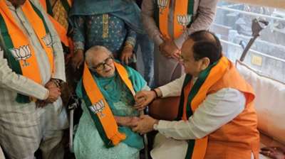 भाजपा के स्थापना दिवस के मौके पर राष्ट्रीय अध्यक्ष जेपी नड्डा ने दिल्ली में पार्टी की वरिष्ठ कार्यकर्ता 98 वर्षीय शकुंतला आर्य से मुलाकात की
