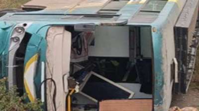 महाकुंभ जा रही ट्रैवल्स बस दुर्घटनाग्रस्त, वाहन के परखच्चे उड़ गए, लगभग 12 लोग थे सवार