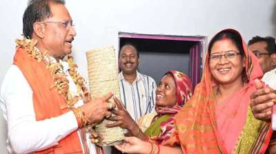 मुख्यमंत्री ने दोकड़ा में पीएम आवास योजना के हितग्राही संतु चक्रेस को चाबी देकर गृह प्रवेश कराया