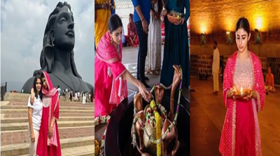 आदियोगी दर्शन करने पहुंचीं मौनी रॉय, किया जल अभिषेक